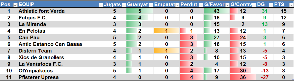 Us deixem els resultats de la segona jornada de lliga on La Ventafocs va aconseguir la seva primera victòria en el primer partit de la lliga.