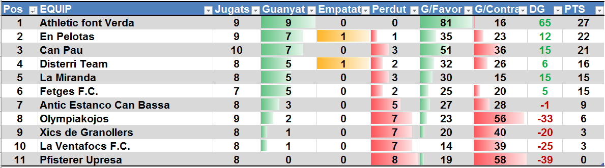 Després de la jornada 10 la classificació queda així.