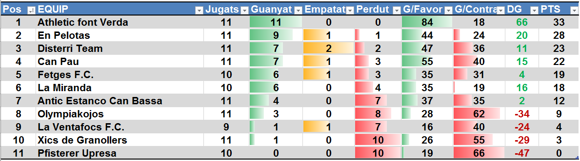 Després de la jornada 12 i els partits ajornats jugats, la classificació queda així.