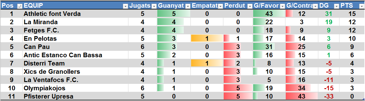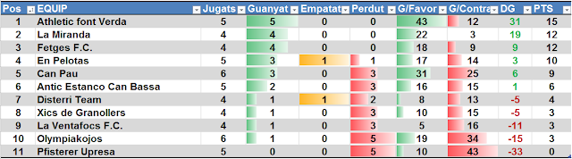 Aquí teniu els resultats de la Jornada 6 de la lliga de futbol a 7 de Granollers Lliga 4.